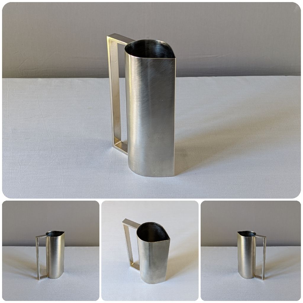 Carafe Design Giorgio ARMANI, élégante signée Giorgio Armani, réalisée en acier inoxydable brossé. Son design épuré allie modernité et raffinement, avec sa forme cylindrique incurvé.
