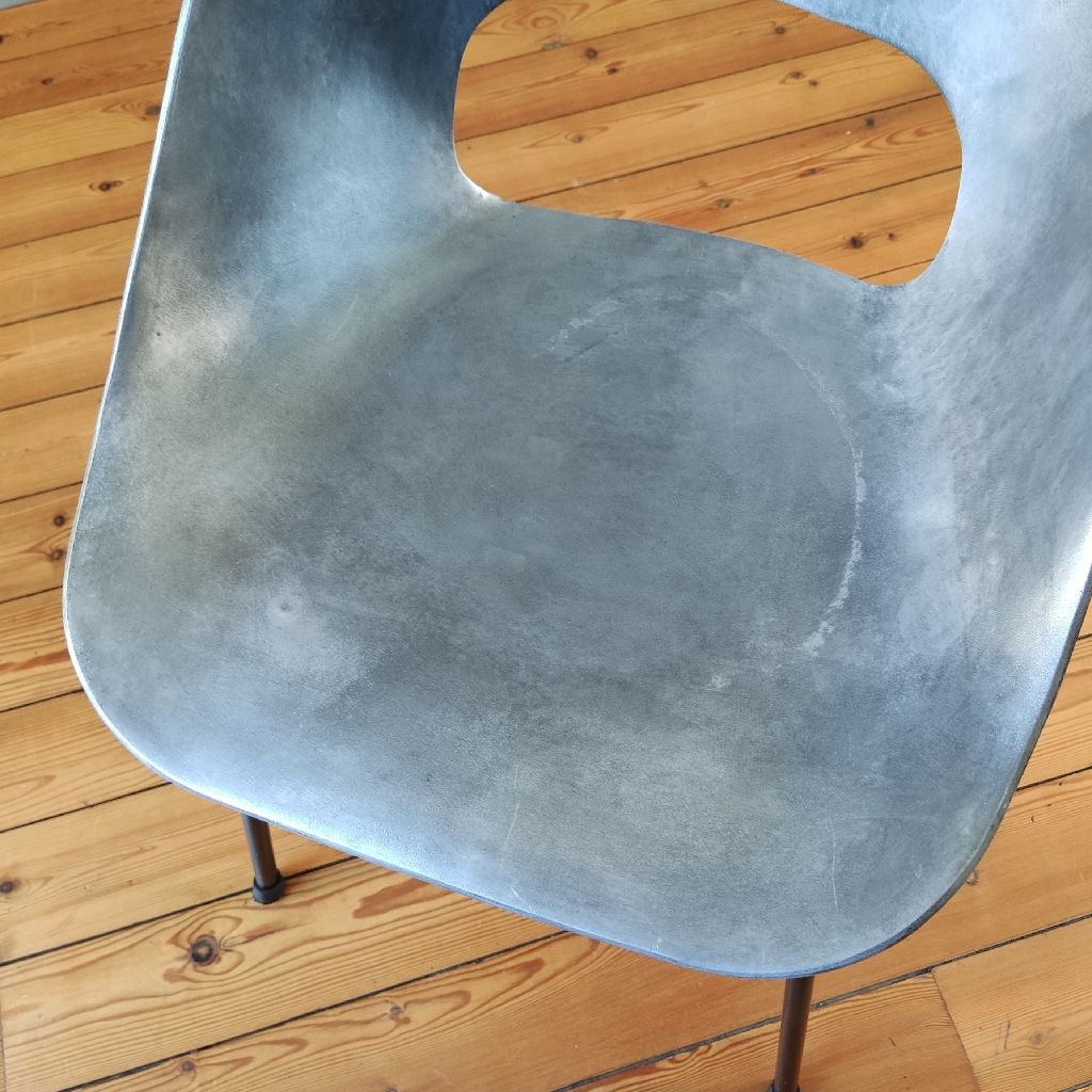 Pierre GUARICHE a conçu cette chaise en fonte d’aluminium, avec un piétement en acier laqué noir. Ce modèle séduit depuis toujours les passionnés de design moderne du XXème siècle.